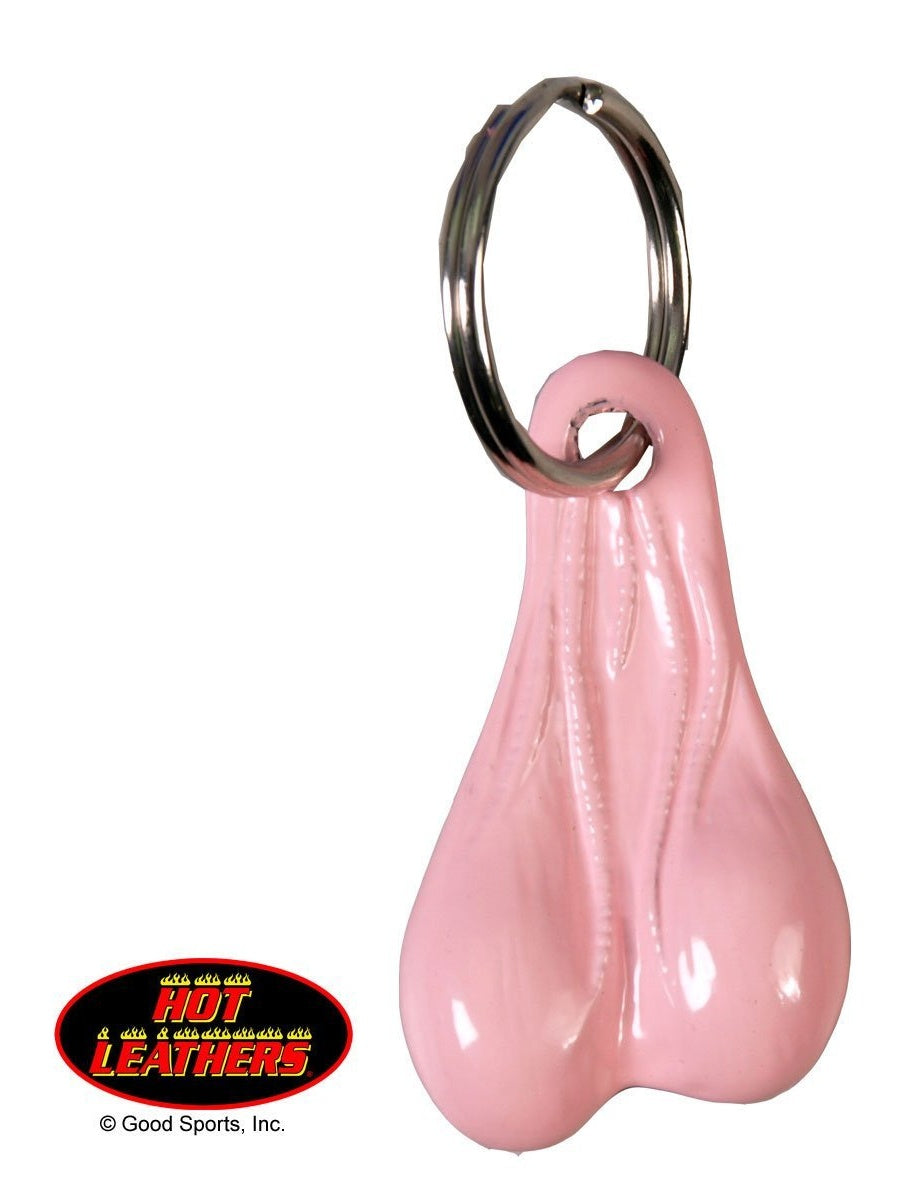 Stainless steel balls keychain in the pink made for the biker with a witty sense of humor.