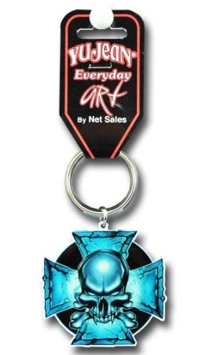 Top Heavy - Blue Skull and Iron Cross - Metal Keychain