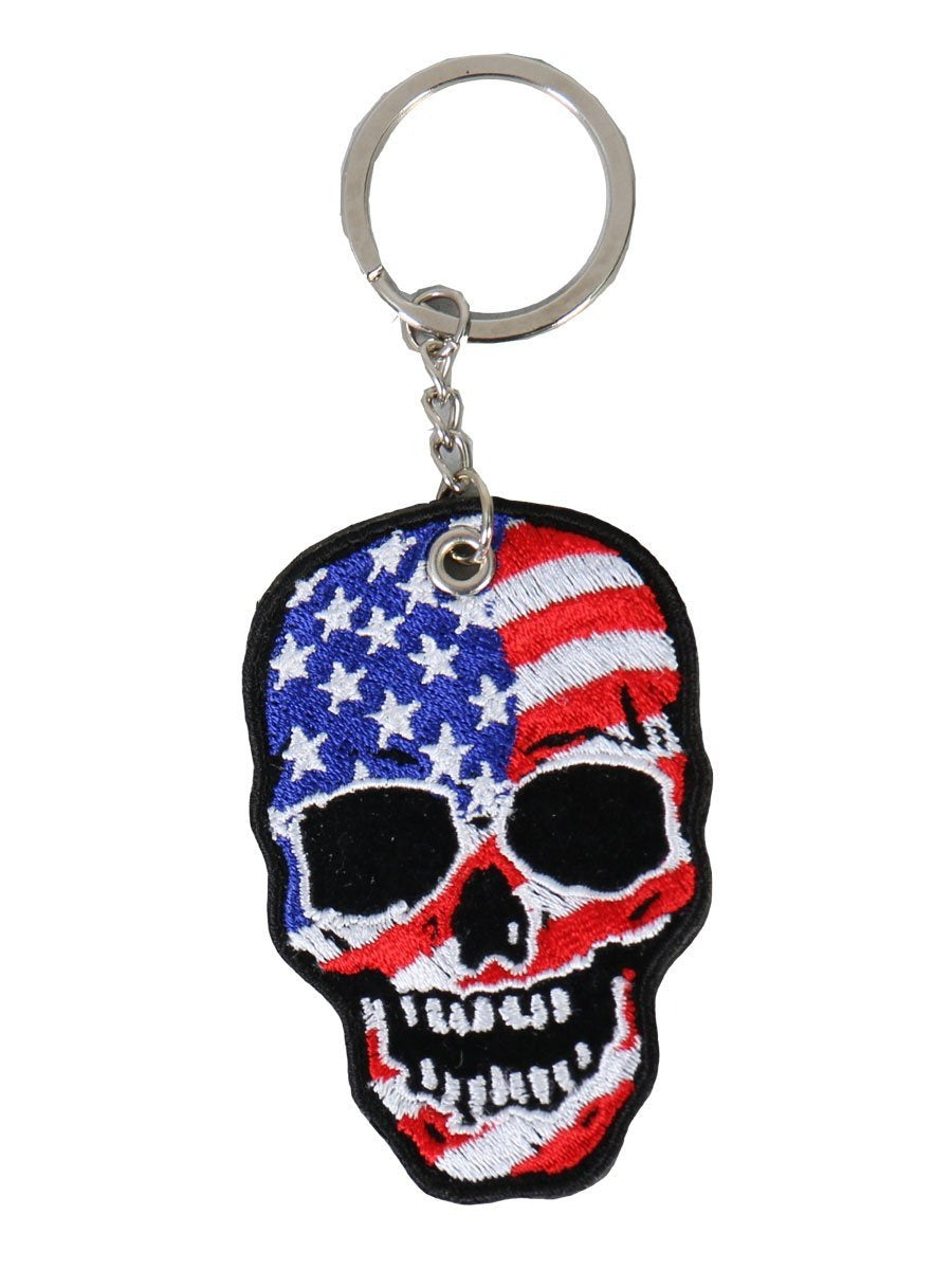 Double Sided Key Chains, AMERICAN FLAG SKULL - High Quality Embroidered PATCH KEYCHAIN - 2" x 3"