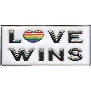 LGBTQ Love Wins Lapel Pin that features unique and detailed design made of enamel and metallic material. Tie pin enthusiasts would love to have one of these collectible fashion items. Stick your badge pin on anything: jackets, hats, caps, lapels, backpacks and on anything you wish to decorate with. A great gift idea for anyone on any occasion and a giveaway souvenir present on an event. Add this one of a kind original novelty pin design to your badge and buttons collections. Product size: 0.55" x 1.2"