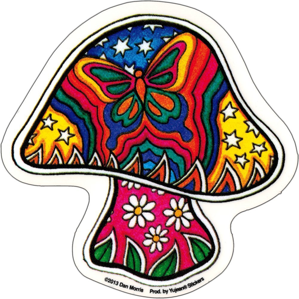 Butterfly Mushroom - Dan Morris, Waterproof Vinyl Sticker DECAL for Car Bumper Skateboard Laptop Luggage - 4" x 4"