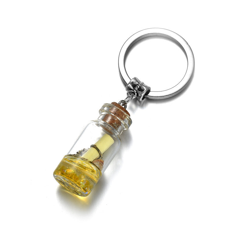 Drifting Bottle Charm Keychain - Drift Glass Message Bottle Key Ring - Yellow