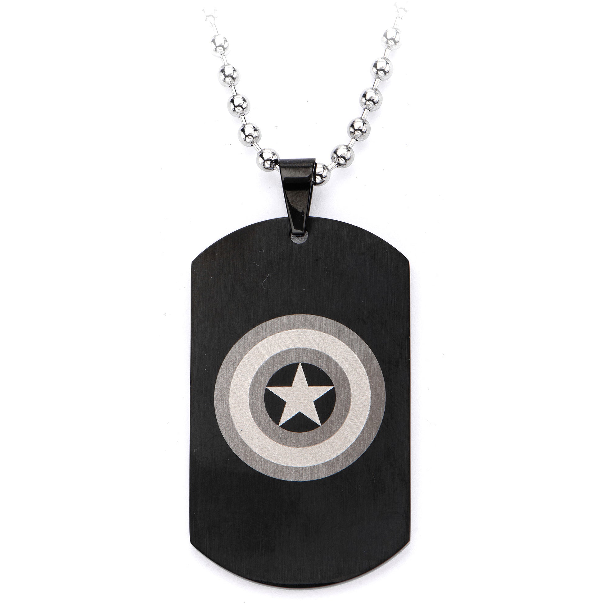 Marvel Comics Unisex Captain America Stainless Steel Chain Dog Tag Pendant Necklace, 24"
