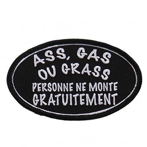 ASS, GAS OR GRASS, PERSONNE NE MONTE GRATUITEMENT - 4" x 2" Embroidered PATCH