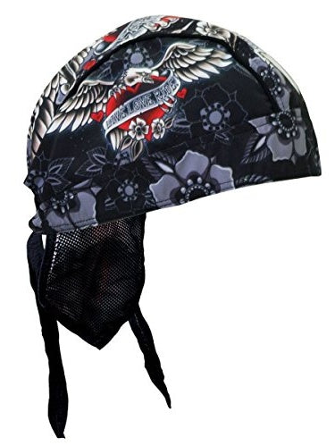 Protect yourself from heat, wind and dust with these high quality head wraps. It’s made from lightweight microfiber fabric material with mesh line that works as a sweatband and a motorcycle helmet liner for an added layer of comfort during long rides. These adjustable designer headbands are designed with unique original artwork displays to accent your biker look and attitude. Add our various designs to your collection of decorative but essential bandanas and cool durag accessories. It can also be the best gift idea for cancer patients undergoing chemotherapy treatment. They could use it as a headwear or skull cap cover to conceal hair loss during the curing process. It’s a unisex head wrap apparel. One size, fits most. Proudly made and designed in the USA. Get yours now!