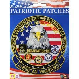 "AMERICAN WARRIORS" Remembered - Patriotic Patches, Embroidered Iron On Patch - 5.25"