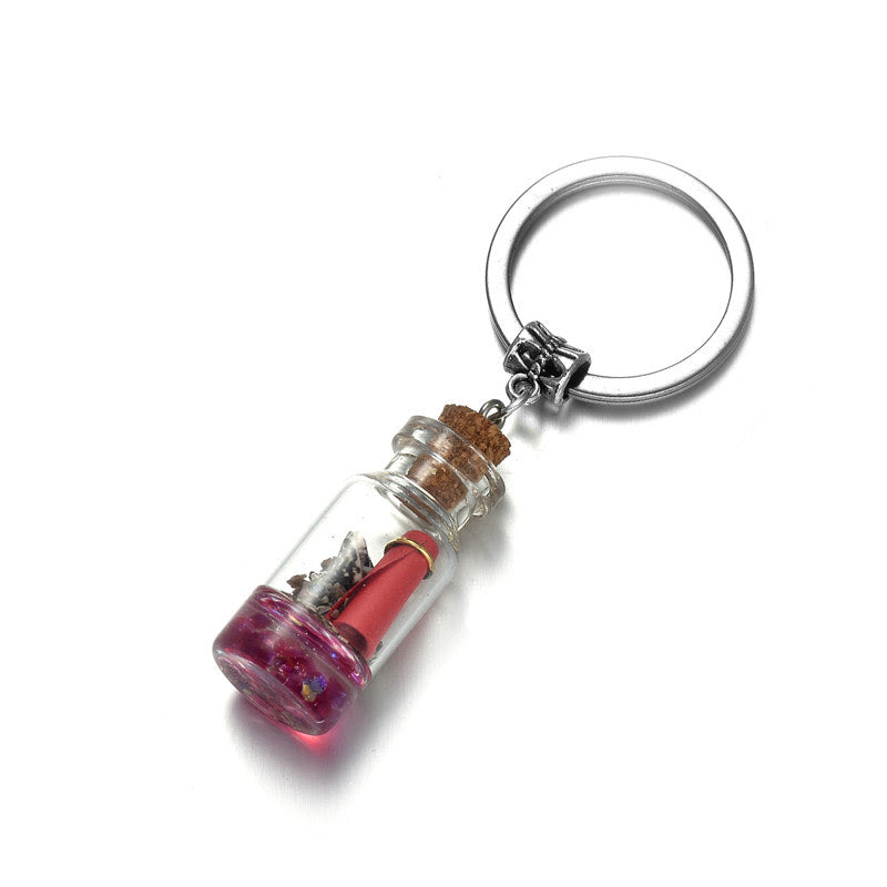 Drifting Bottle Charm Keychain - Drift Glass Message Bottle Key Ring - Red