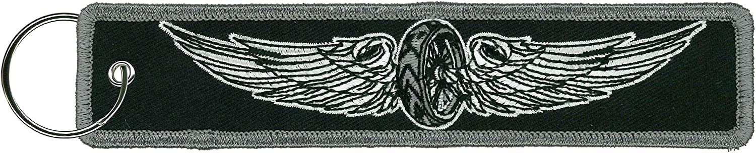 FLYING WHEEL, FOB KEYCHAIN - Double Sided Key Ring High-Quality Full Thread Embroidered Rayon Biker Keychain - 1.25" x 6.2"