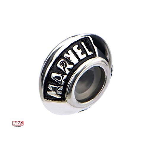 Stainless Steel Marvel Logo Bead Charm Bracelet Spacer. Licensed Jewelry Packaging Included.