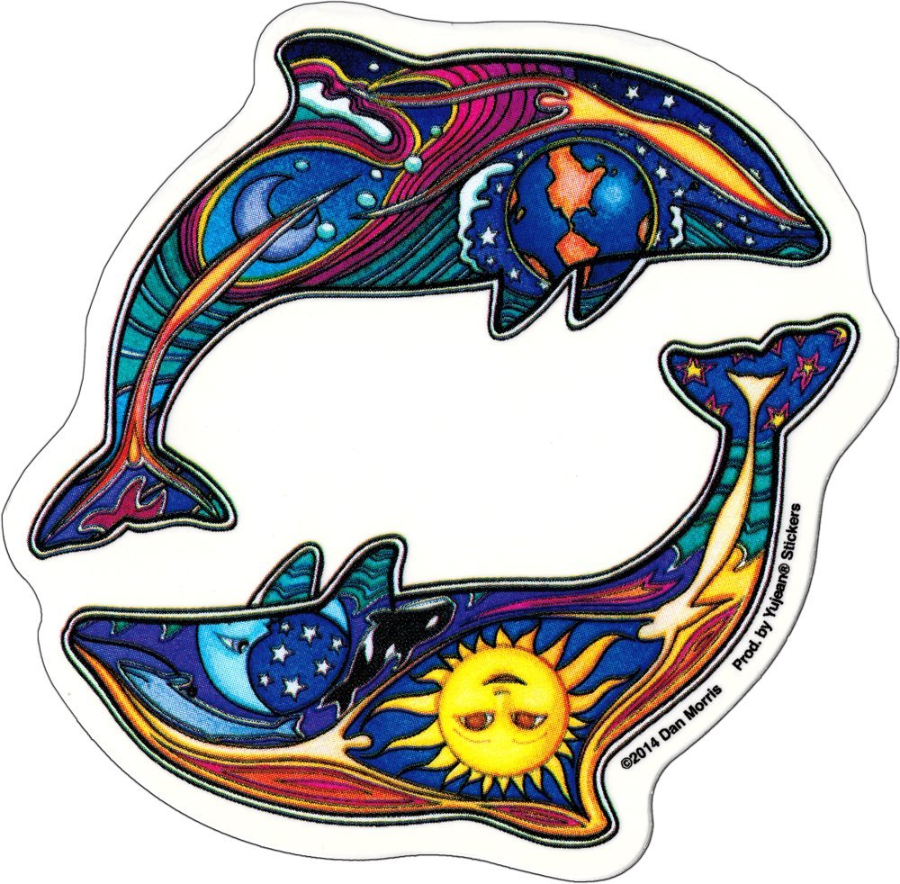 Night Day Dolphins - Dan Morris, Waterproof Vinyl Sticker DECAL for Car Bumper Skateboard Laptop Luggage - 4.4" x 4.5"