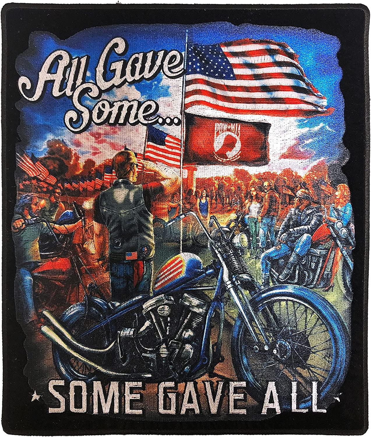 Original Famous Patches & Appliques, "ALL GAVE SOME, SOME GAVE ALL" REMEMBRANCE Embroidered Sew-on Patches have Unique and Novelty Designs that are Best Addition to your Collection. Decorate your Clothes with this High Thread Patch. Perfect for Leather Jackets and Leather Vests. Great for Jeans, Blouses, Bags or any Clothing. Wear this Heat Sealed Backing Patch is Made from Premium Quality Fabric and Sturdy Adhesive Materials. A Merchandise Designed and Manufactured in the USA. Size - 8.5" x 10".