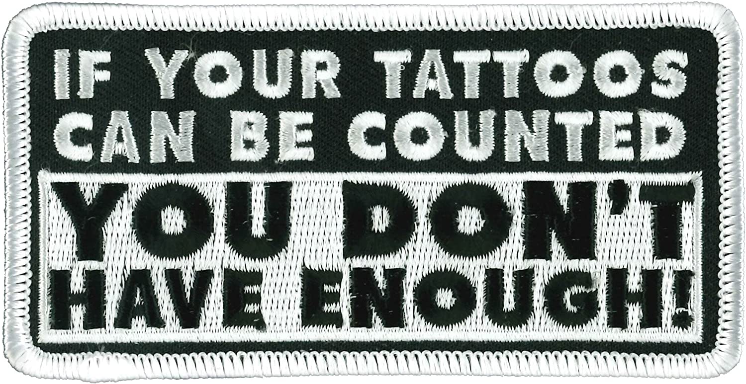 IF YOUR TATTOOS CAN BE COUNTED YOU DON'T HAVE ENOUGH! PATCH - Iron-On Heat Sealed Backing Sew-On Patch - 4" x 2"