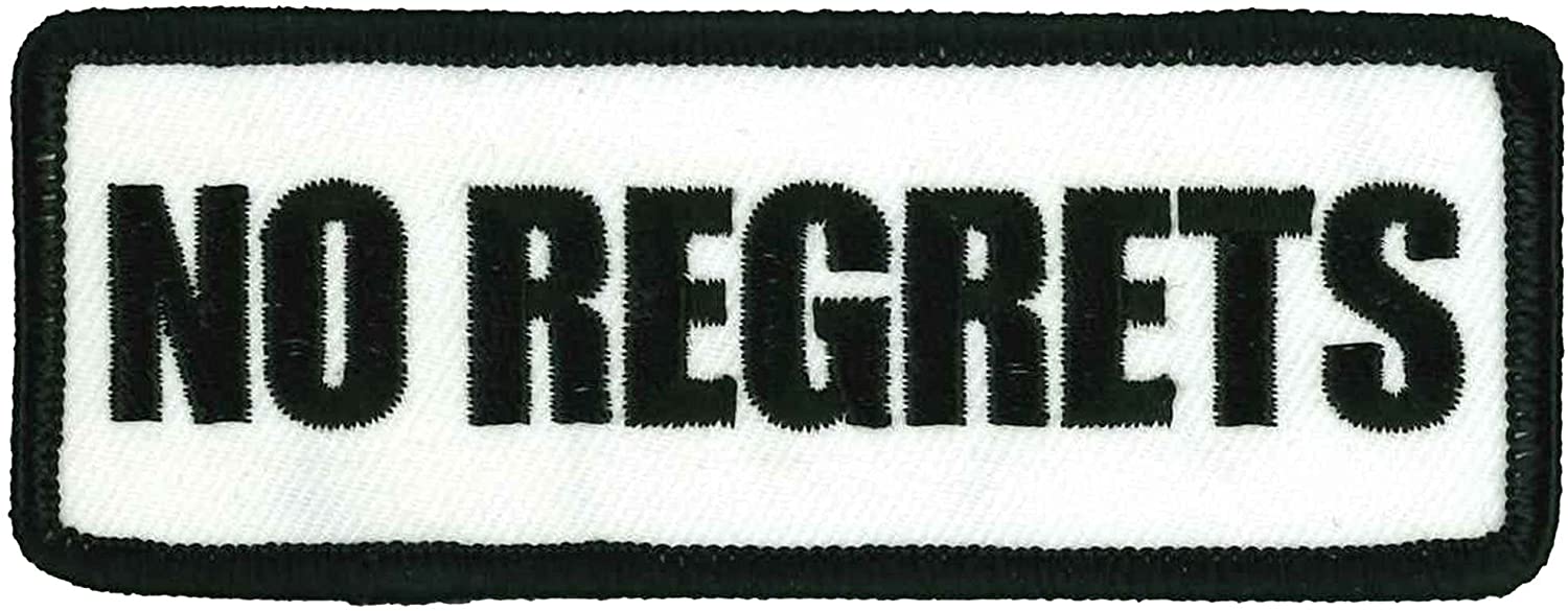 Original Famous Patches & Appliques, NO REGRETS Embroidered Sew-on Patches have Unique and Novelty Designs that are Best Addition to your Collection. Decorate your Clothes with this High Thread Patch. Perfect for Leather Jackets and Leather Vests. Great for Jeans, Blouses, Bags or any Clothing. Wear this Heat Sealed Backing Patch is Made from Premium Quality Fabric and Sturdy Adhesive Materials. A Merchandise Designed and Manufactured in the USA. Size - 4" x 2".