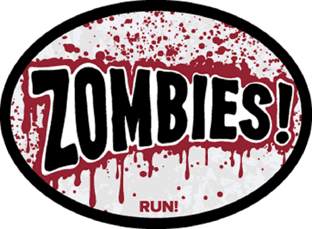 ZOMBIES! RUN! Sticker - Orignal Artwork Vinyl - Reflective Oval Decal Sticker - 3.5" x 4.75"