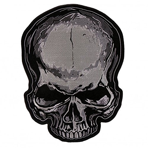 JUMBO SKULL GRAY, High Thread Embroidered Iron-On / Saw-On, Heat Sealed Backing Rayon PATCH - 4" x 3"