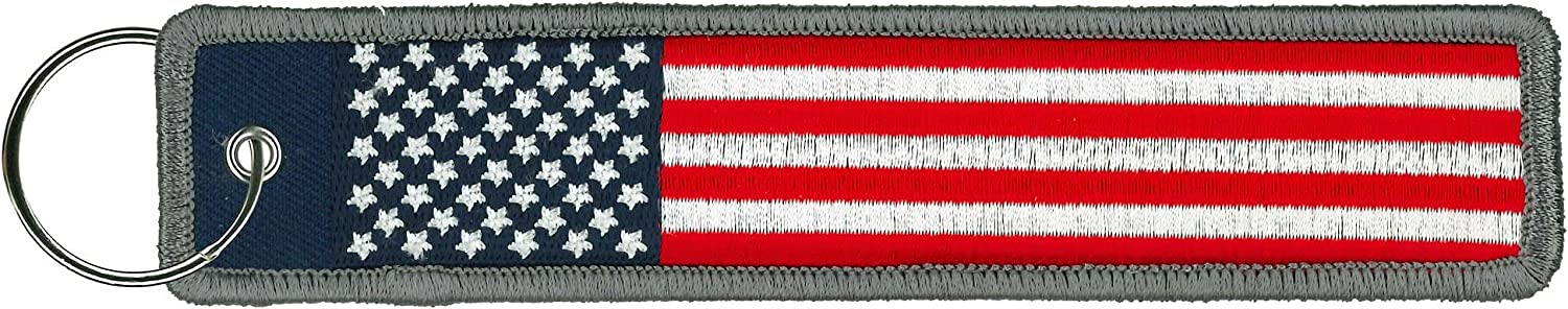 USA FLAG, FOB KEYCHAIN - Double Sided High-Quality Full Thread Embroidered Rayon Biker FOB Keychain - 1.25" x 6.2"
