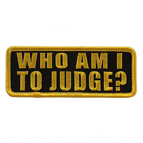 WHO AM I TO JUDGE? High Thread Embroidered Iron-On / Saw-On, Heat Sealed Backing Rayon PATCH - 4" x 2"