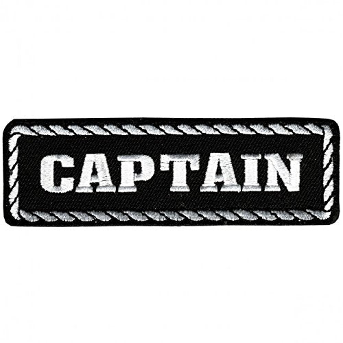 CAPTAIN, Black & White - High Thread Iron-On / Saw-On Rayon PATCH - 4" X 1", Exceptional Quality