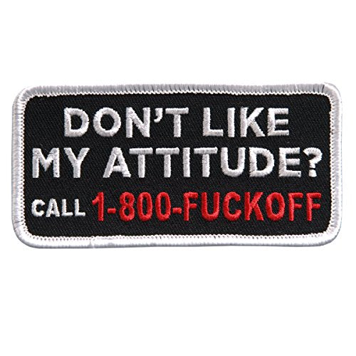 A 4"W x 2"H embroidered patch that reads: "Don't Like My Attitude? Call 1-800-FUCKOFF" in red and white lettering on a black background with white trim and heat sealed backing for easy iron-on application. All patches are designed in the USA and feature original Hot Leathers artwork you will not find anywhere else. High thread count embroidery contributes to high quality and long lasting durability of our superior patches! Unmatched when it comes to bright colors and intricate, incredible designs, our patches are created for easy sewing onto your favorite jacket or vest. Customize your Hot Leathers gear with one of our embroidered patches. We guarantee you’ll find a favorite amongst our many designs!Embroidered Patch Instructions