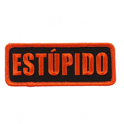 ESTUPIDO, High Thread Embroidered Iron-On / Saw-On, Heat Sealed Backing Rayon PATCH - 4" x 2"