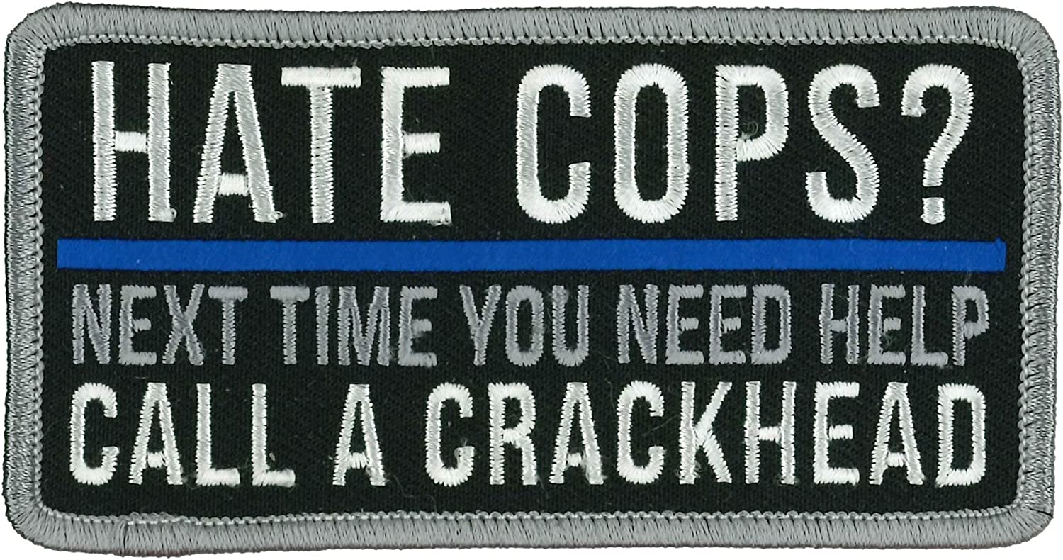 Original Famous Patches & Appliques, HATE COPS? NEXT TIME YOU NEED HELP CALL A CRACKHEAD Embroidered Sew-on Patches have Unique and Novelty Designs that are Best Addition to your Collection. Decorate your Clothes with this High Thread Patch. Perfect for Leather Jackets and Leather Vests. Great for Jeans, Blouses, Bags or any Clothing. Wear this Heat Sealed Backing Patch is Made from Premium Quality Fabric and Sturdy Adhesive Materials. A Merchandise Designed and Manufactured in the USA. Size - 4" x 2".