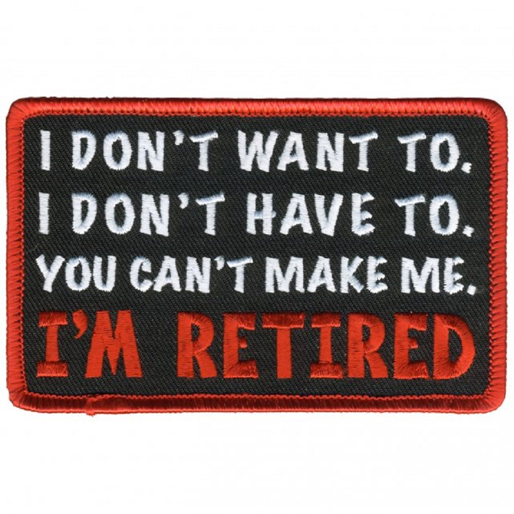 I'M RETIRED, Bikers PATCH, Thread Rayon Iron-On Heat Sealed Backing / Sew-On Embroidered PATCH - 4" x 3"