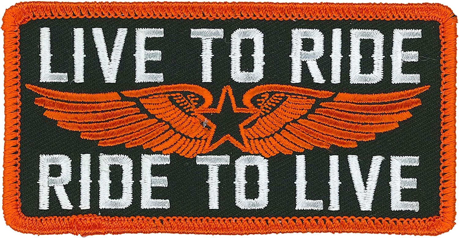Original Famous Patches & Appliques, LIVE TO RIDE' 'RIDE TO LIVE' Patch have Unique and Novelty Designs that are Best Addition to your Collection. Decorate your Clothes with this High Thread Embroidered Sew On Patch. Perfect for Leather Jackets and Leather Vests. Great for Jeans, Blouses, Bags or any Clothing. Wear this Heat Sealed Backing Patch is Made from Premium Quality Fabric and Sturdy Adhesive Materials. A Merchandise Designed and Manufactured in the USA. Size - 4" x 2".