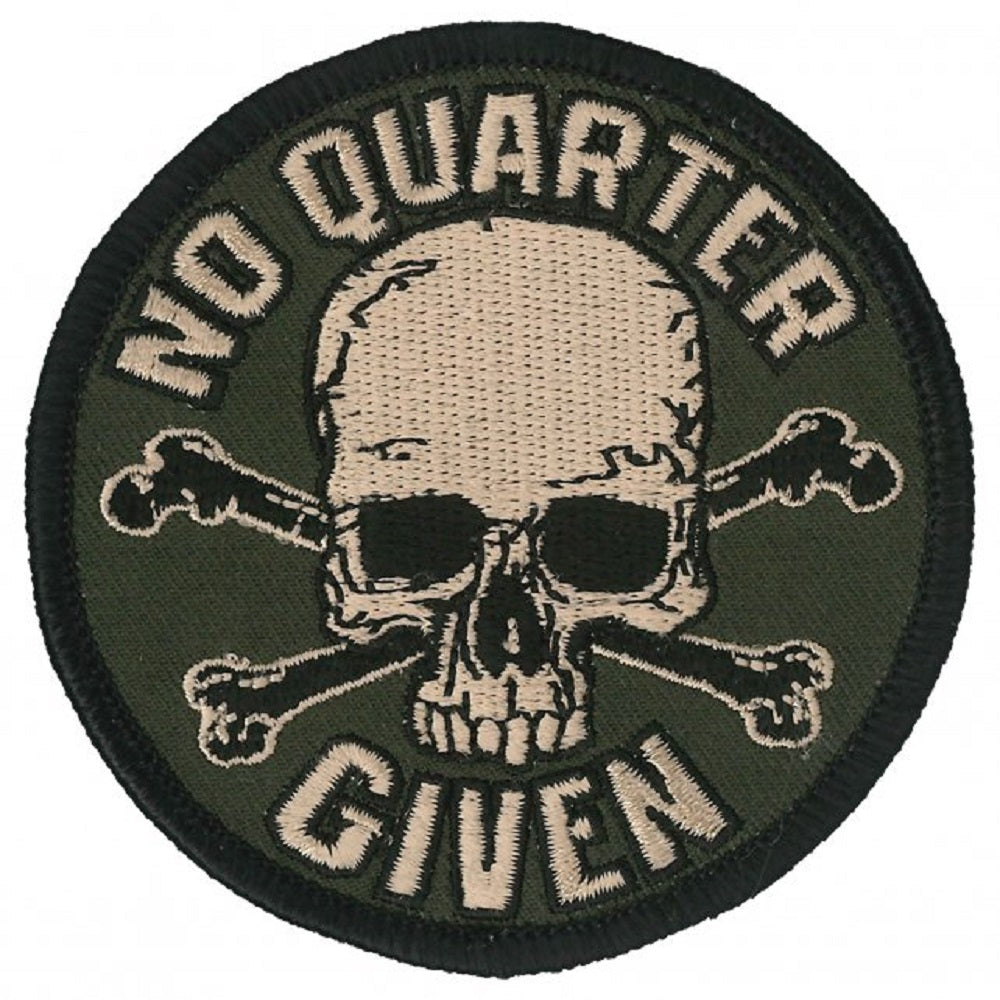 NO QUARTER GIVEN SKULL, Bikers PATCH, Thread Rayon Iron-On Heat Sealed Backing / Sew-On Embroidered PATCH - 3" x 3"