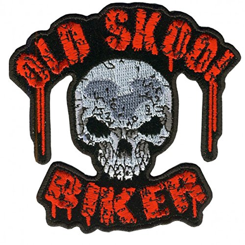 OLD SKOOL BIKER, High Thread Iron-On/Saw-On Rayon Hook & Loop Fastener - PATCH - Size - 4" x 4"