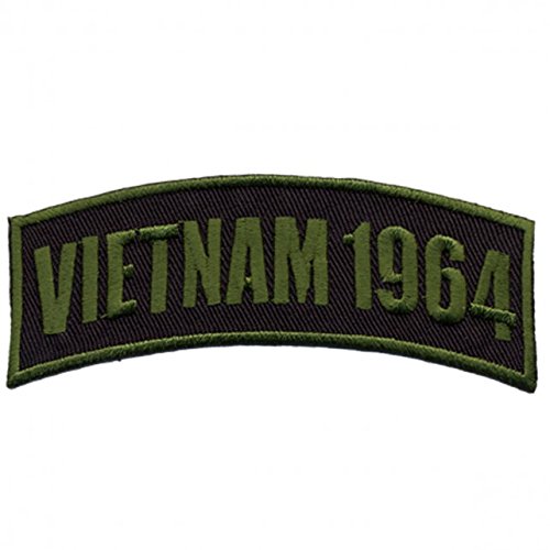 Vietnam 1964 embroidered rocker patch with olive lettering on a black background and heat sealed backing for easy iron-on application. All patches are designed in the USA and feature original Officially Licensed artwork you will not find anywhere else. High thread count embroidery contributes to high quality and long lasting durability of our superior patches! Unmatched when it comes to bright colors and intricate, incredible designs, our patches are created for easy sewing onto your favorite jacket or vest. Customize your Officially Licensed gear with one of our embroidered patches. We guarantee youÆll find a favorite amongst our many designs!
