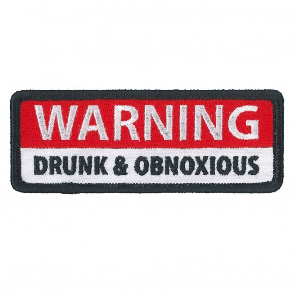 WARNING! DRUNK & OBNOXIOUS, Bikers PATCH, Thread Iron-On Heat Sealed Backing / Sew-On Embroidered PATCH - 4" x 2"